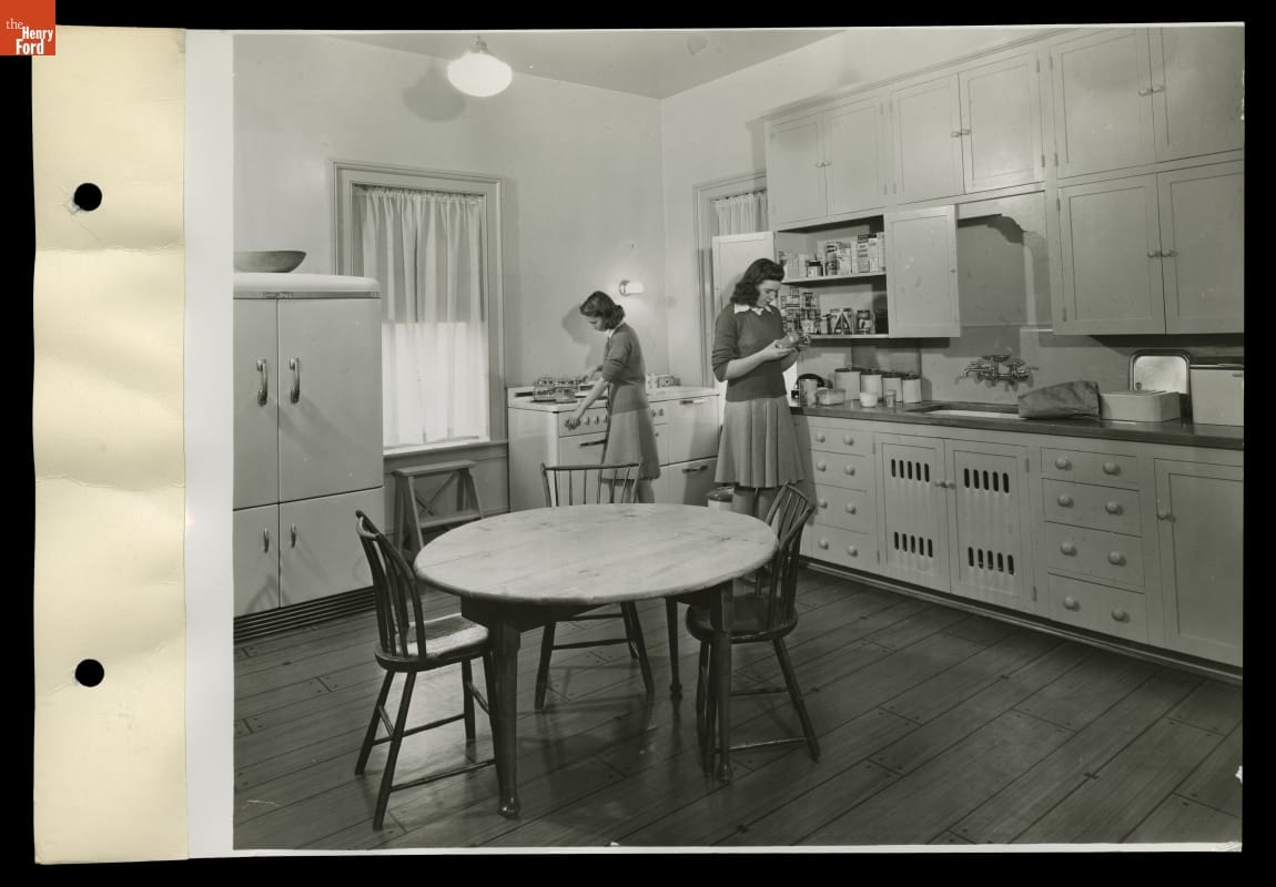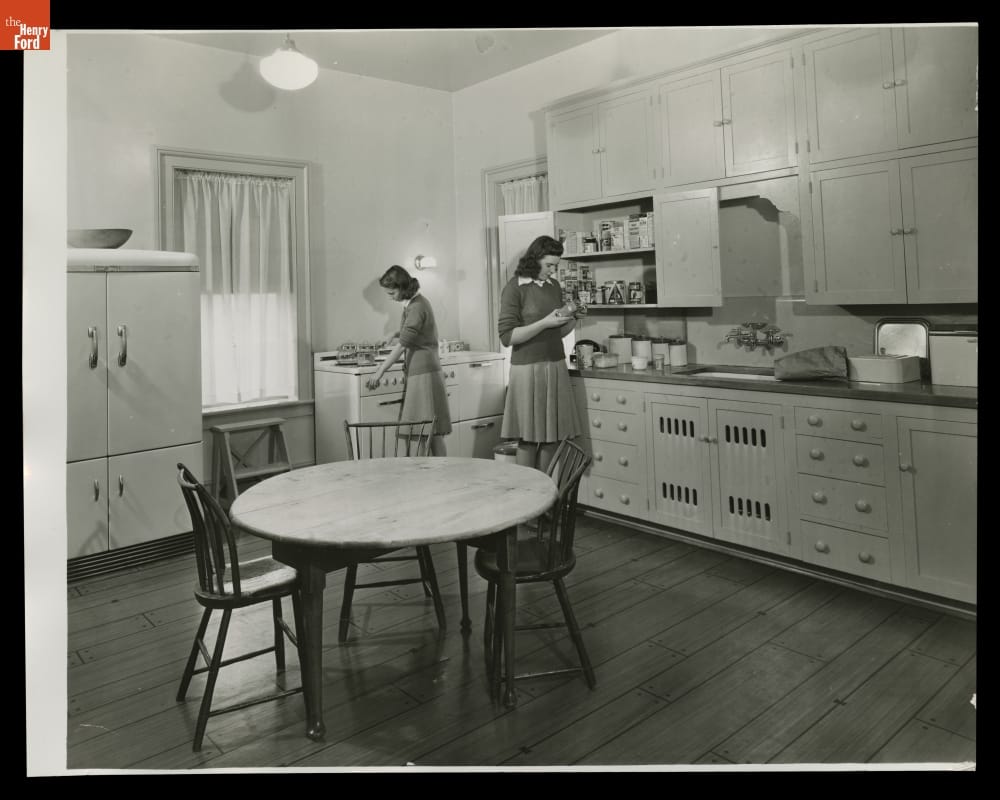 Edison Institute High School Students in Kitchen at Noah Webster Home, 1942
