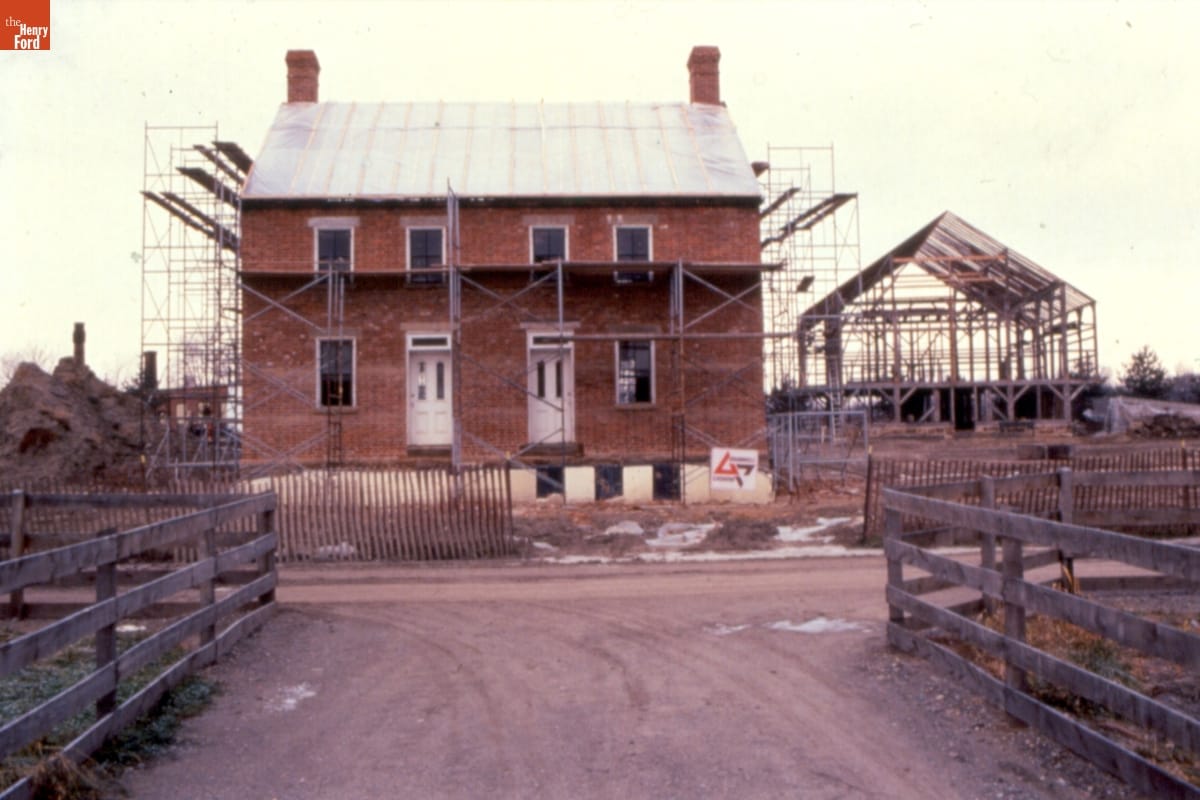 Firestone Farmhouse and Barn during Construction in Greenfield Village, December 1984