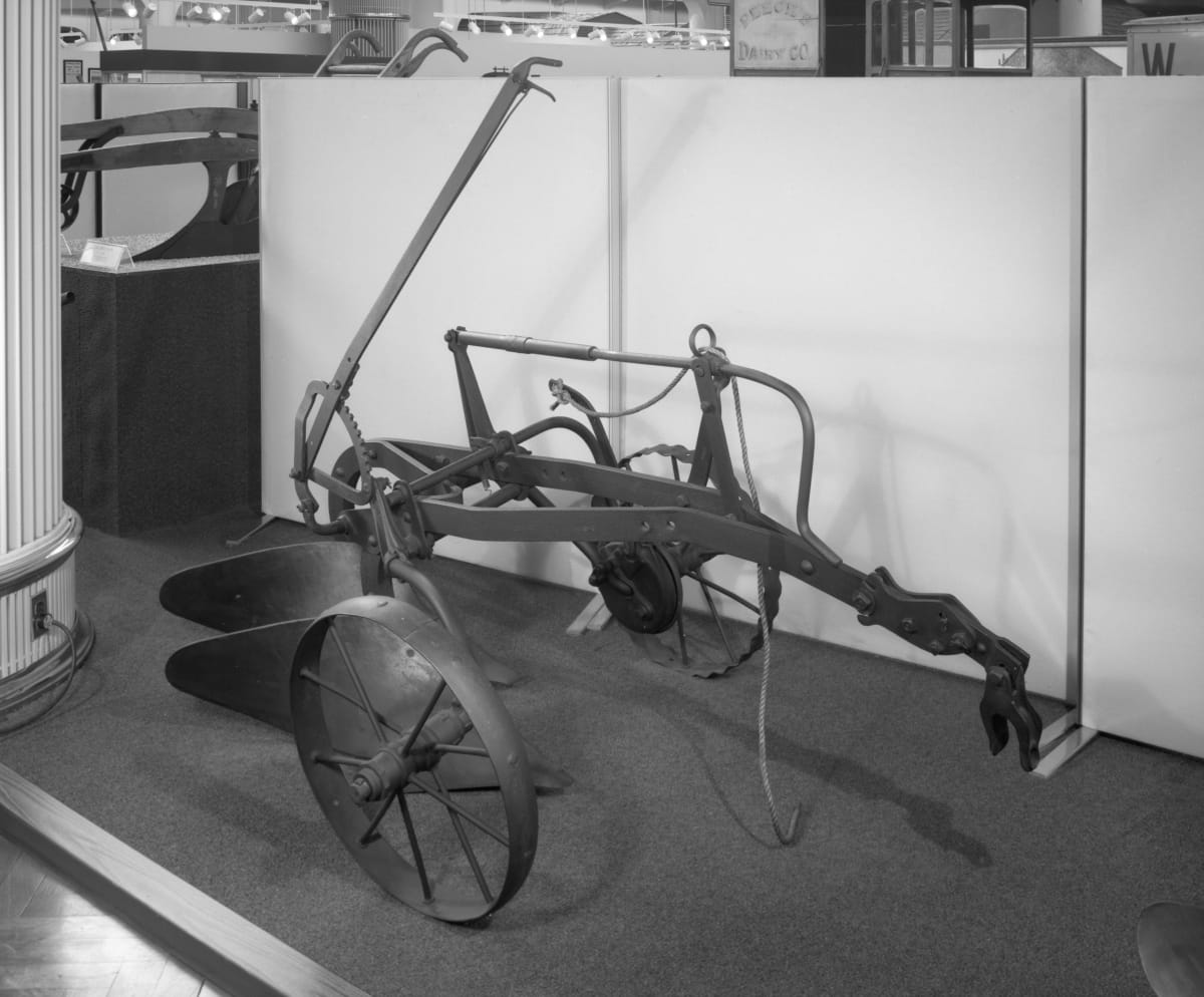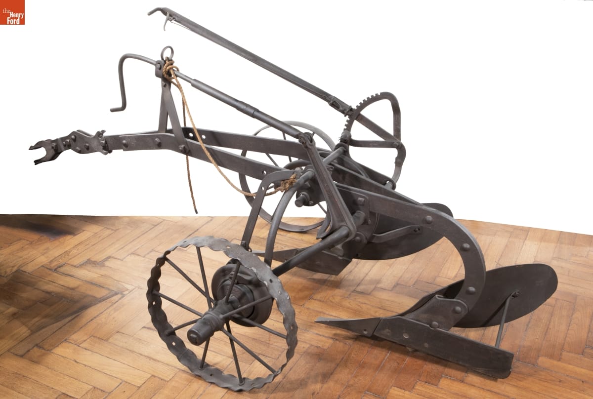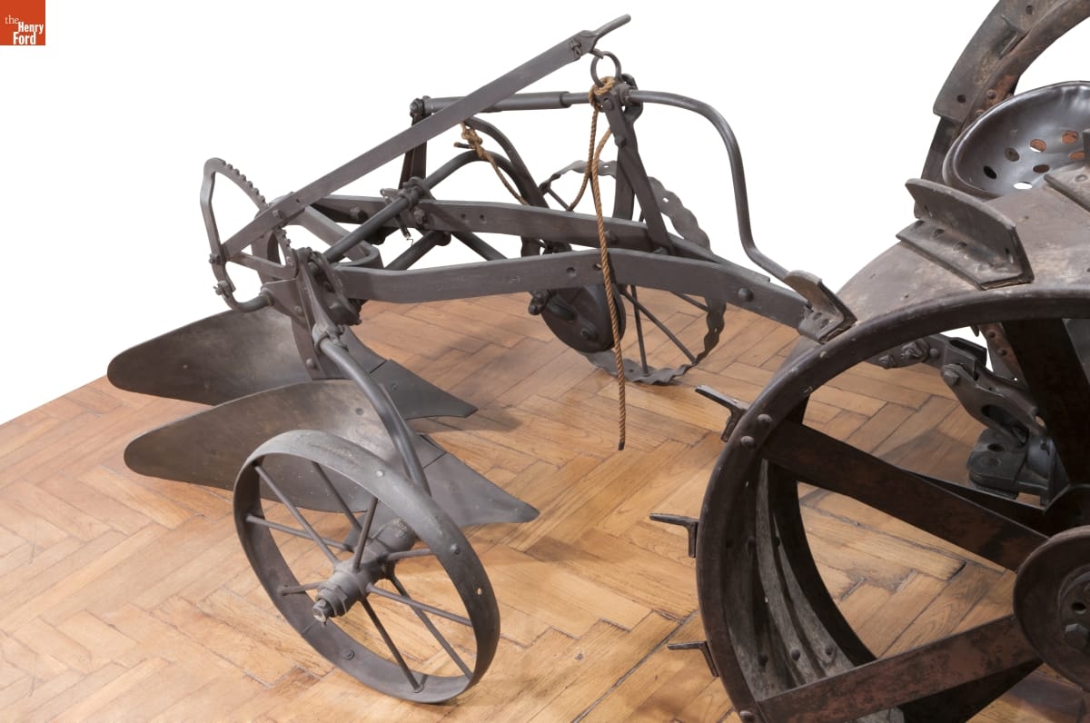 Henry Ford included an Oliver Model 7 Plow (similar to this 7A) with each Fordson tractor he gave away. Oliver designed this plow for use with the Fordson. The farmer no longer had to dismount at the end of the field but instead could use the trip rope connected to a clutch on the plow's axle to lift the two plow shares (called "bottoms").
