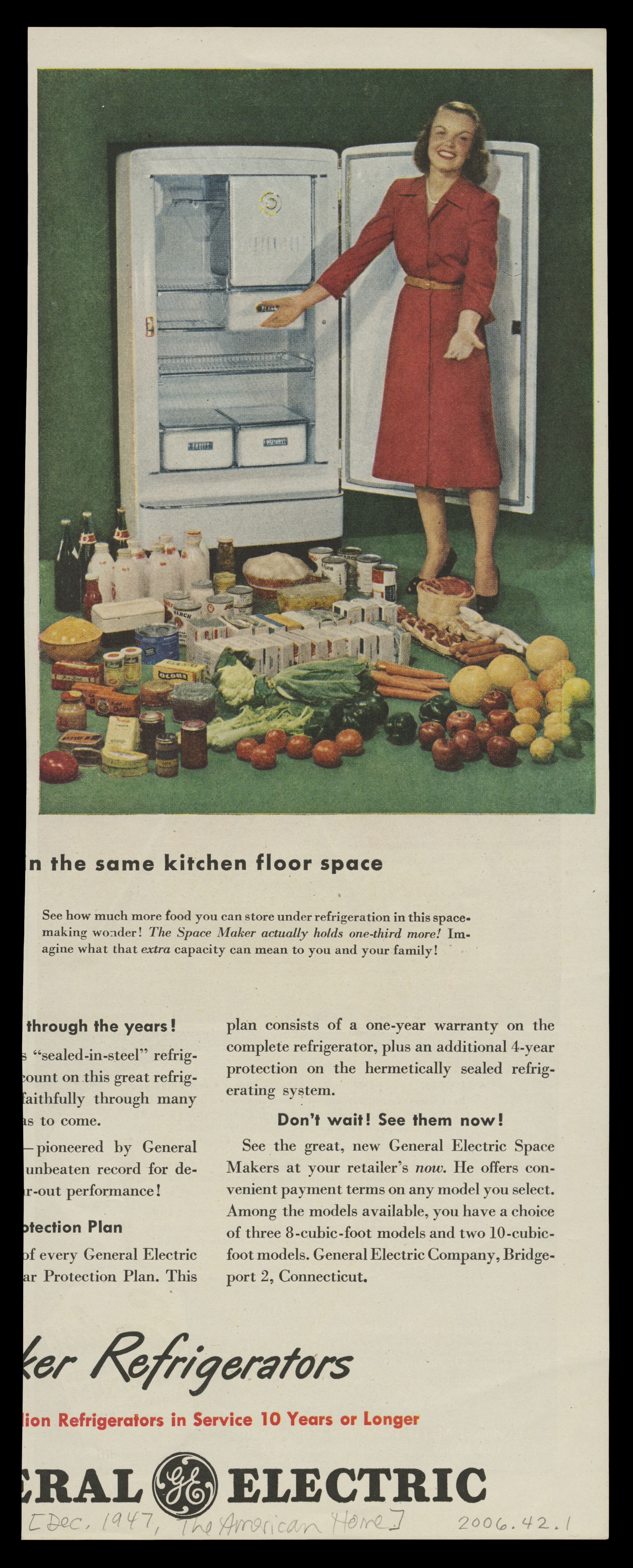 In 1932, Louis Schnitzer and Nathan Gelfman formed Everlast Metal Products Corporation, producing high-quality, hand-forged aluminum giftware. In an era of growing uniformity via factory production, the "made by hand" aspect of these products held an aesthetic appeal for consumers. This advertisement for Everlast aluminum hostess accessories features a portable bar, ice preserver, and coaster set.