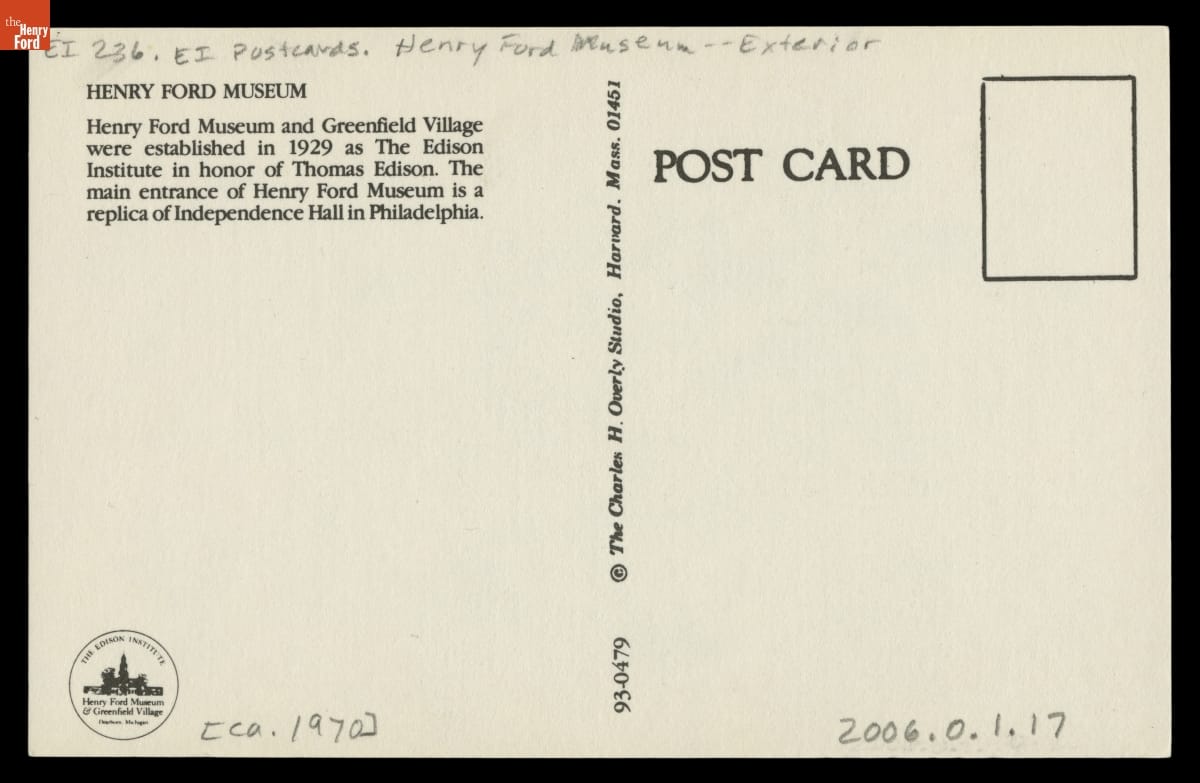 Postcard, "Henry Ford Museum Tower," circa 1970