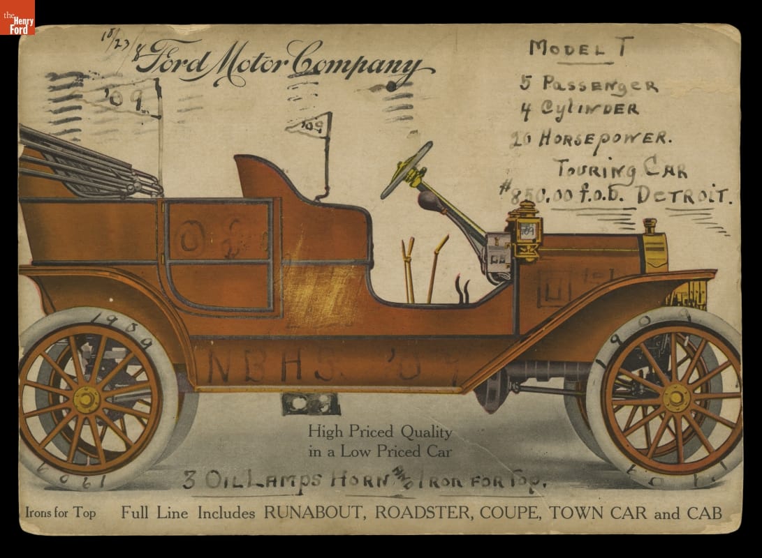 Postcard Advertising the Ford Model T, "High Priced Quality in a Low Priced Car," 1908