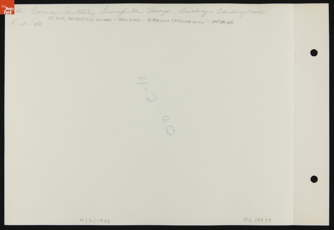 Textile-Working Equipment inside Plymouth Carding Mill (now Gunsolly Carding Mill), Greenfield Village, 1940