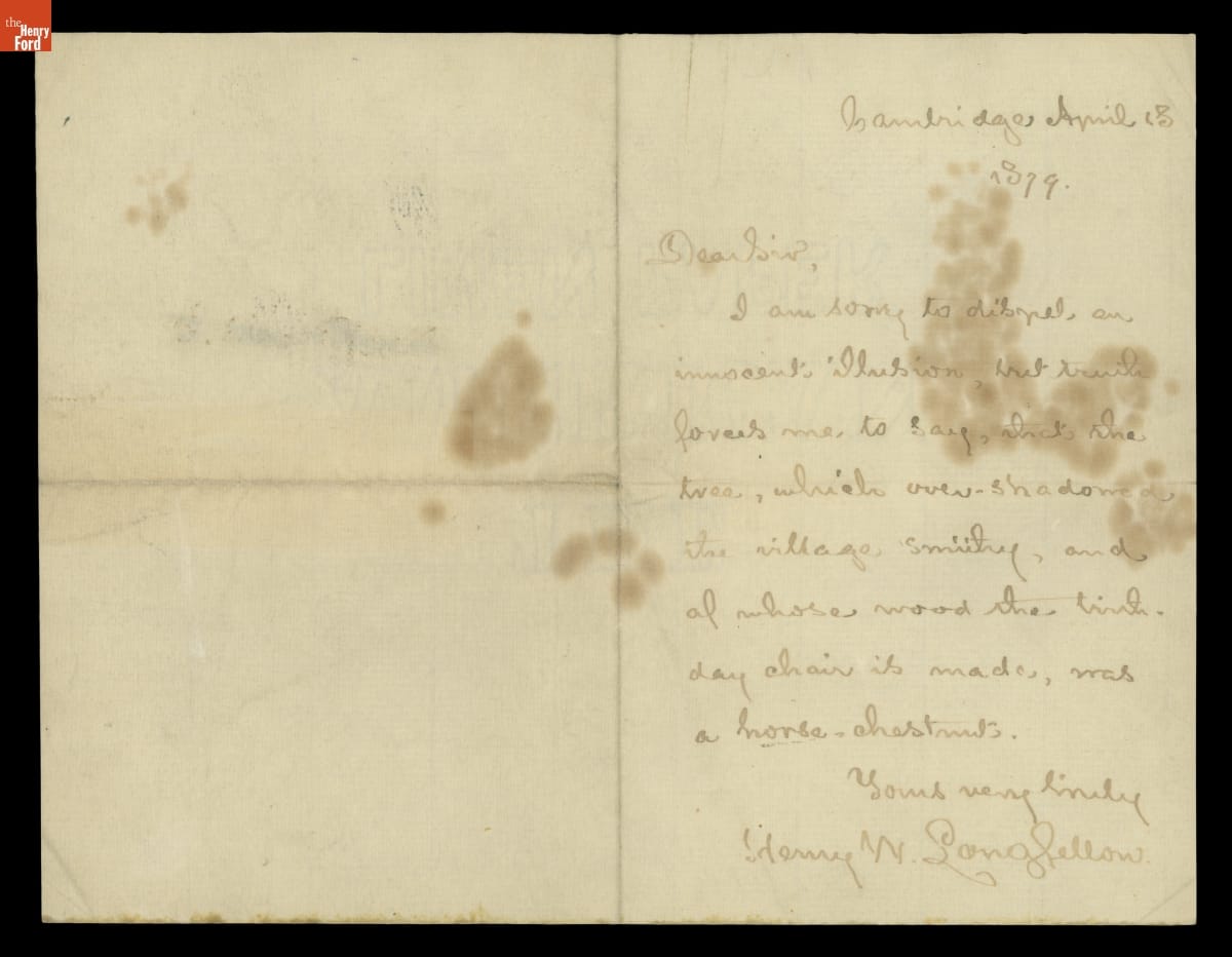 Letter from Henry Wadsworth Longfellow, April 18, 1879