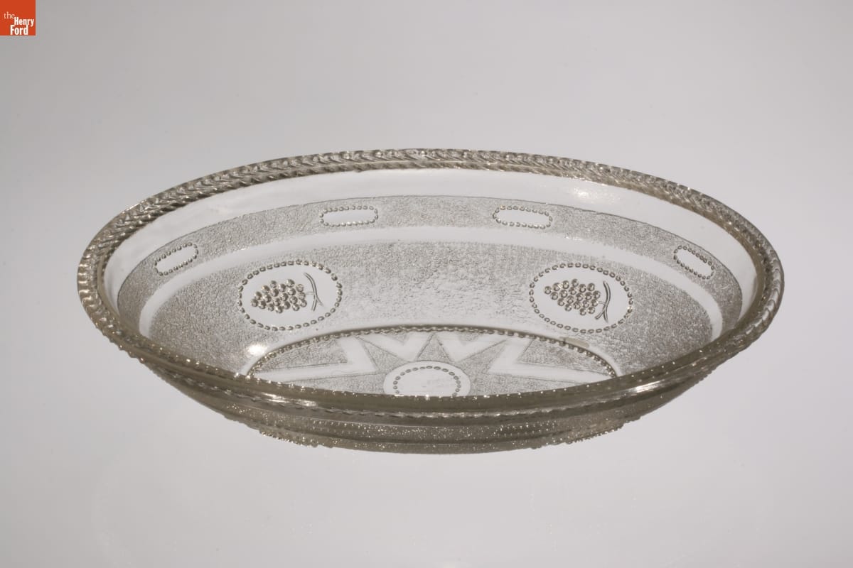 Nineteenth-century American glassmakers experimented with new methods to create products for a growing consumer market. In the 1820s, pressing glass into metal molds by machine was perfected, and by the mid-1800s, manufacturers were creating a variety of inexpensive pressed glass housewares. America's middle-class consumers could now decorate their homes with attractive glass bowls, creamers, dishes, plates, vases, and other tableware.