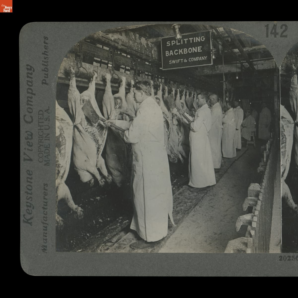 20256 Splitting Backbones and Final Inspection of Hogs / Before Placing Them in the Refrigerator Rooms / Chicago, ILL, U.S.A.