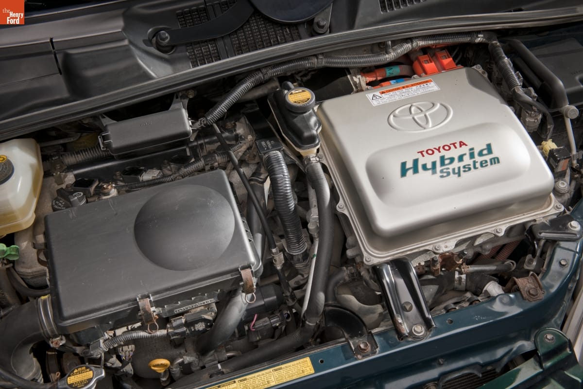 Hybrid automobiles improve fuel efficiency and reduce tailpipe emissions compared with standard internal combustion-powered cars. Hybrids use small internal combustion engines and battery-powered electric motors. Powerful computers and sophisticated software coordinate the smooth, seamless transfer of power between the two units. This Prius is one of Toyota's first-generation hybrids, introduced in the United States in 2000.