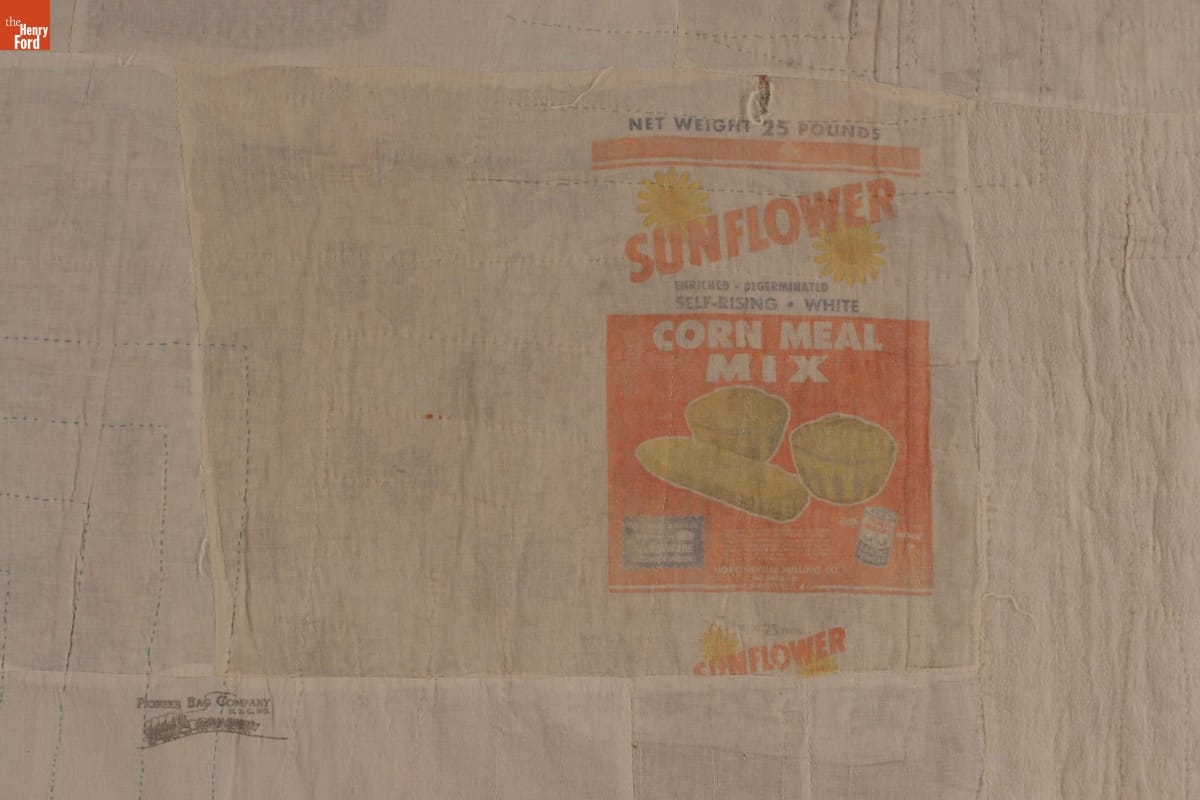 Printed on feed sack on back: NET WEIGHT 25 POUNDS / SUNFLOWER / ENRICHED DEGERMINATED / SELF-RISING * WHITE / CORN MEAL / MIX . . . HOPKINSVILLE MILLING CO. / INCORPORATED / HOPKINSVILLE, KY / PIONEER BAG COMPANY / N.Y.C, NY
