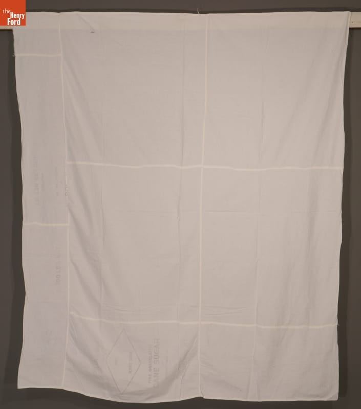 Bedsheet Pieced Together from Commercial Sacks by Susana Allen Hunter, 1950-1970