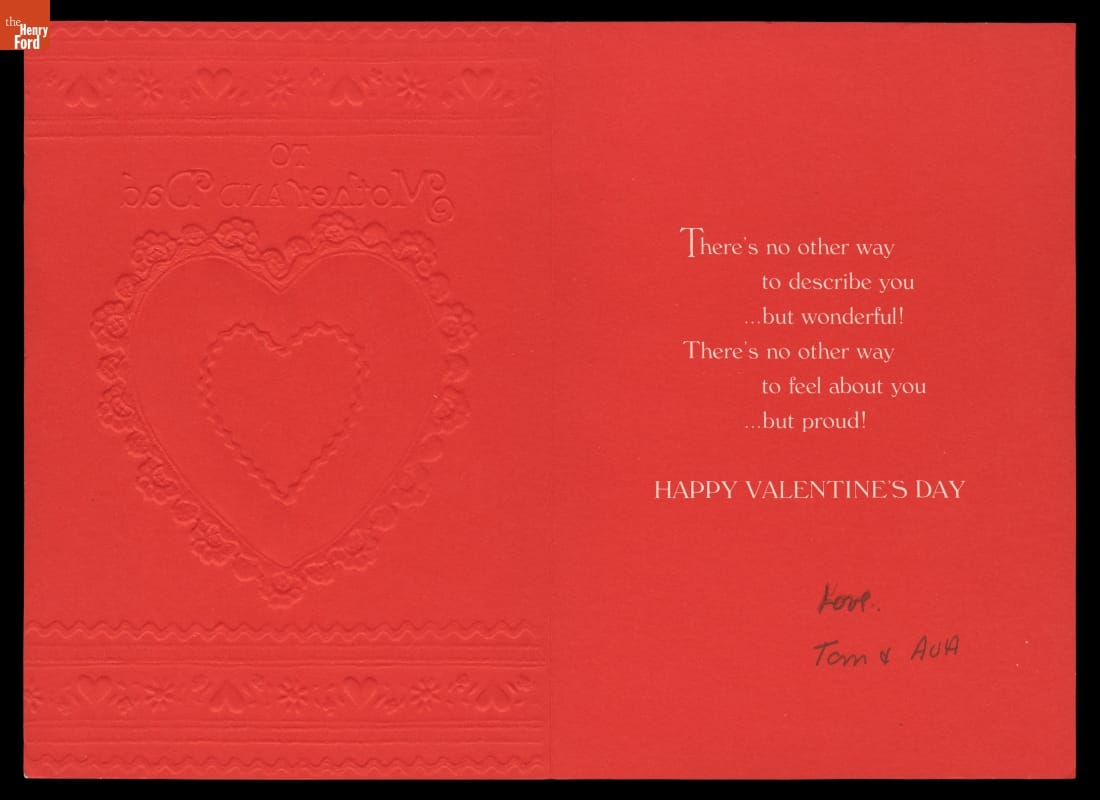 Valentine Card, "To Mother and Dad," circa 1975