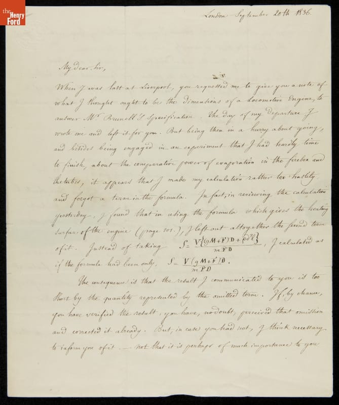 Letter from F.M. Guyonneau De Pambour to John Dixon, 1836