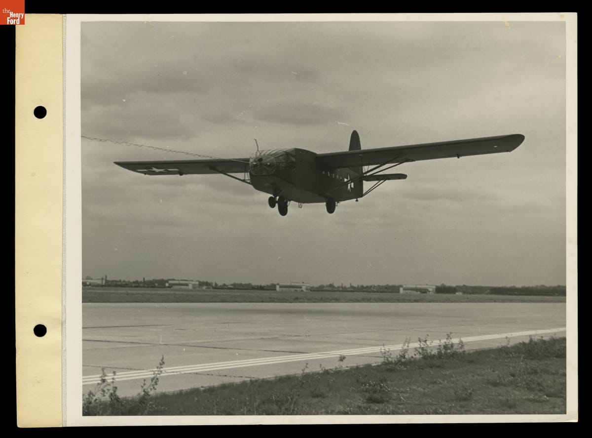 In June 1943, Ford Motor Company received a contract to build Waco CG-13A gliders for the U.S. Army. These gliders were designed to carry more troops and cargo than the smaller Waco CG-4A models Ford produced at its Iron Mountain, Michigan, factory. This photo shows one of the CG-13A gliders in flight at Ford's Willow Run bomber plant.