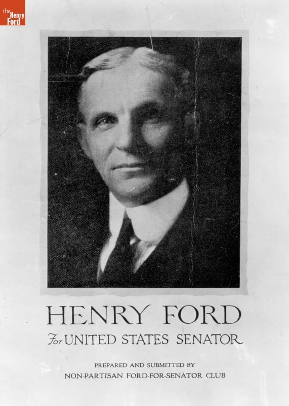 HENRY FORD / FOR UNITED STATES SENATOR / PREPARED AND SUBMITTED BY / NON-PARTISAN FORD-FOR-SENATOR CLUB