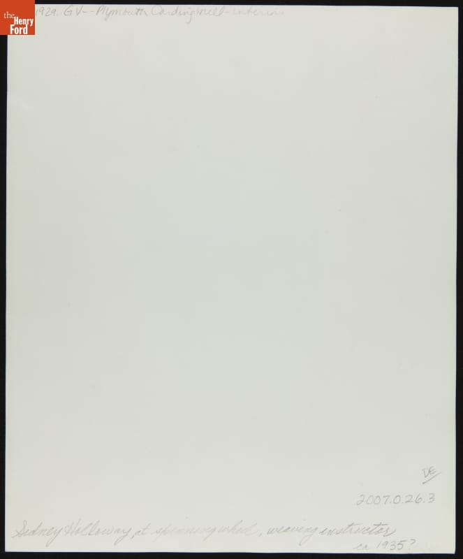 Sidney Holloway (1901-1960) was instrumental in establishing the weaving program at Greenfield Village. Holloway, once employed in the Ford Motor Company's Textile Department, began working with Henry Ford's textile-making collections in 1930. Through hands-on experience and self-study, he mastered the weaving craft. Holloway would engage Greenfield Village visitors for thirty years and pass on his skills to the next generation of artisans.