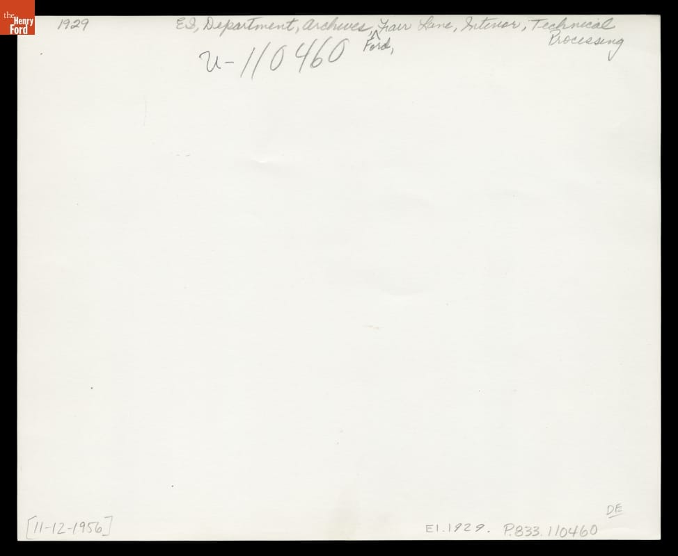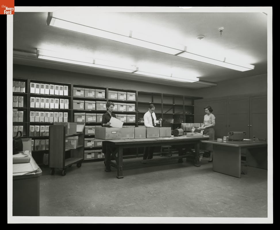 As Ford Motor Company prepared for its 50th anniversary in 1953, staff established a corporate archive at founder Henry Ford's former estate in Dearborn, Michigan. (Ford and his wife Clara had passed away in 1947 and 1950, respectively.) The collection moved to another location in 1957 and would ultimately be housed at the Edison Institute--today known as The Henry Ford.