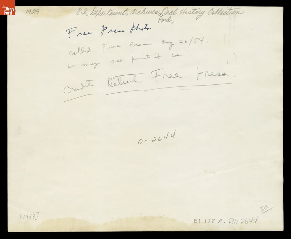 Historian Owen Bombard was hired by Ford Motor Company in 1950 to head an oral history project for the company's newly formed archives. Bombard interviewed more than 300 people who had known or worked with Henry Ford and Edsel Ford. Bombard's interviews provided a more complete picture of Ford Motor Company's first decades -- and of the Fords themselves.