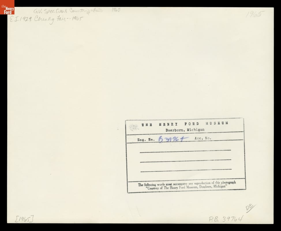 The Henry Ford held its first Country Fair event at Greenfield Village in 1951. The program embodied typical features representing America's early country or county fairs. Visitors enjoyed craft demonstrations, concerts, shows, parades, races and contests, engine and vehicle displays, and animal and livestock exhibits, to name just a few activities. The nearly annual springtime program lasted for thirty years.