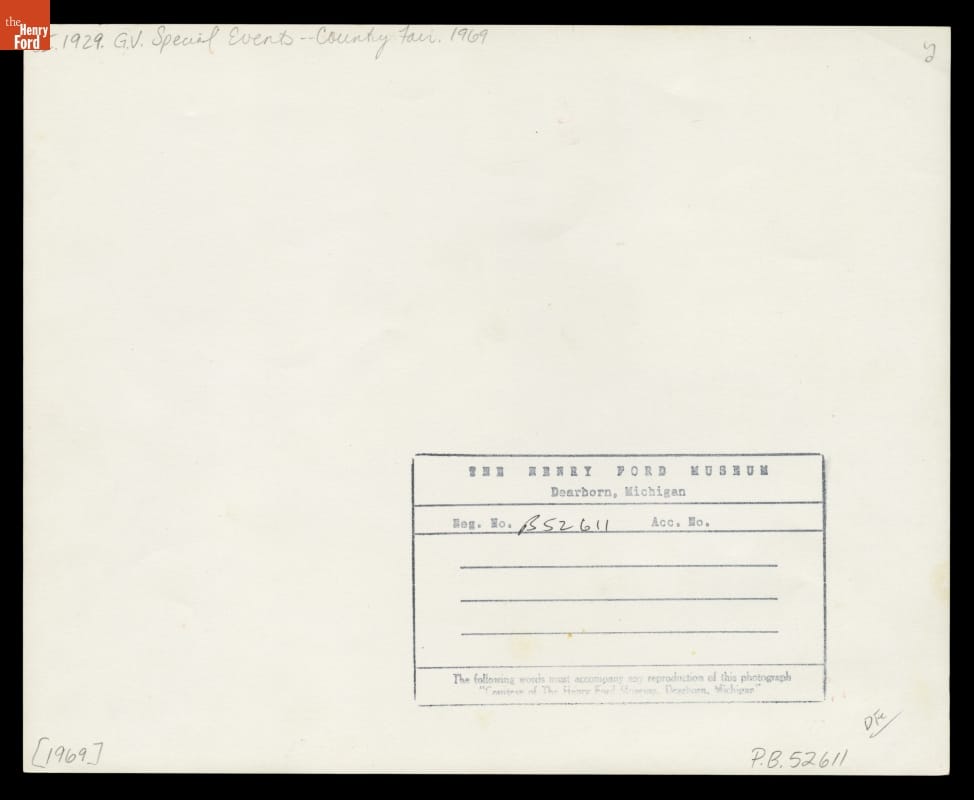 The Henry Ford held its first Country Fair event at Greenfield Village in 1951. The program embodied typical features representing America's early country or county fairs. Visitors enjoyed craft demonstrations, concerts, shows, parades, races and contests, engine and vehicle displays, and animal and livestock exhibits, to name just a few activities. The nearly annual springtime program lasted for thirty years.