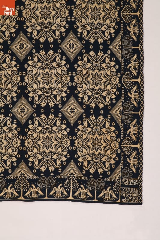 A coverlet is a decorative bedcovering--usually made of cotton and wool--woven on a loom. This one was woven for Andrew Miller by Christian Van Nortwick, a weaver who worked in Asbury, New Jersey, in the 1830s and 1840s. It wasn't often that a man was named as the client for a coverlet--most coverlets were woven for women.