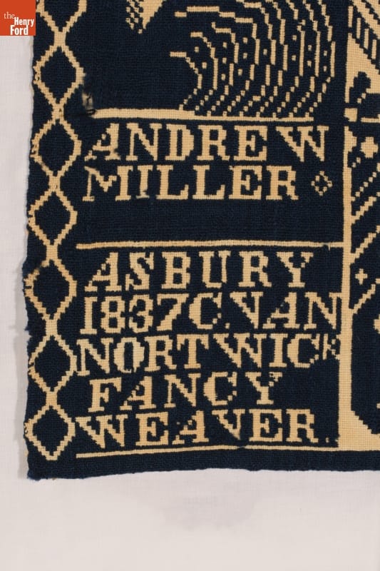 Woven by Christian Van Nortwick (or Van Nortwic) in Asbury, Warren County, New Jersey