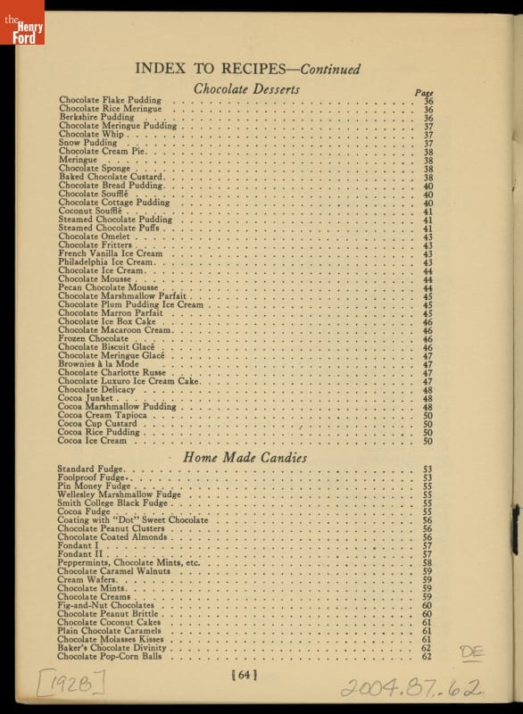 Baker's Chocolate Recipe Booklet, 1928, "Famous Recipes for Baker's Chocolate and Breakfast Cocoa"