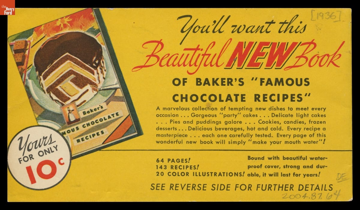 Baker's Chocolate Recipe Booklet, 1936, "Baker's Selected Famous Chocolate Recipes"