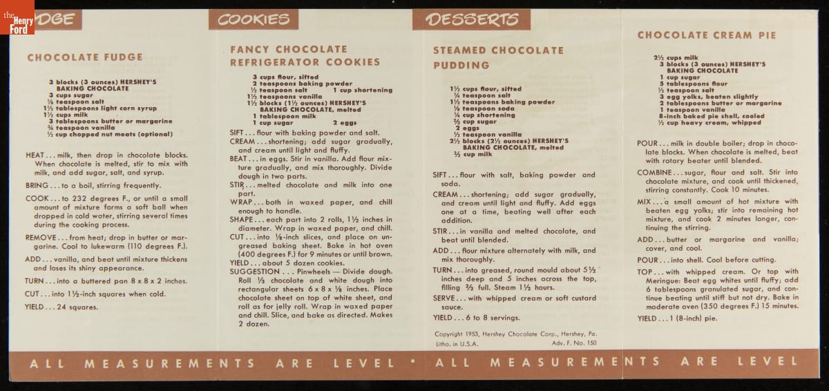 Recipe Leaflet, "9 Famous Recipes for Hershey's Baking Chocolate," 1953