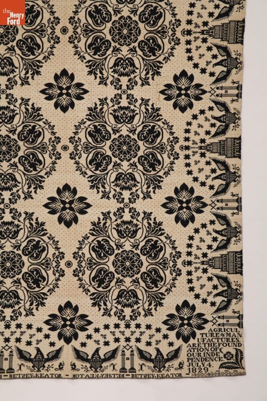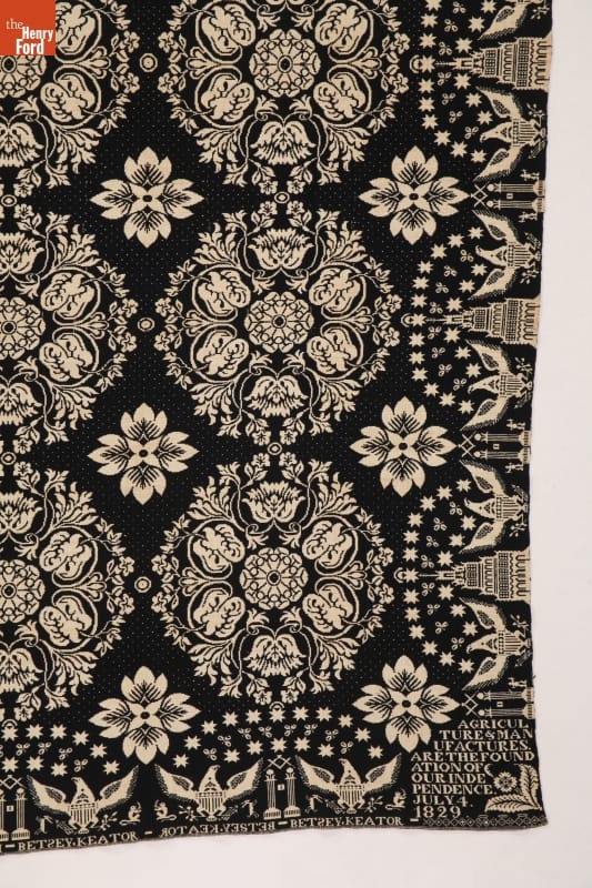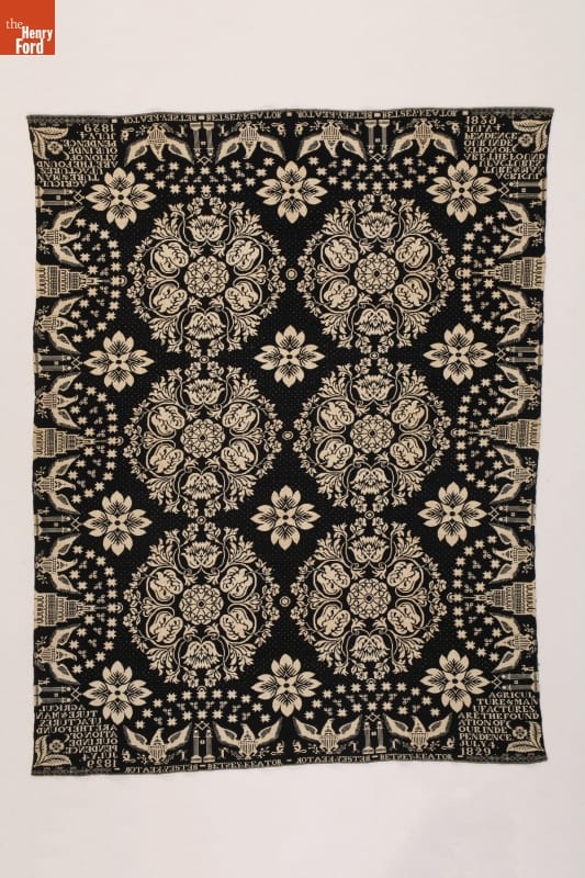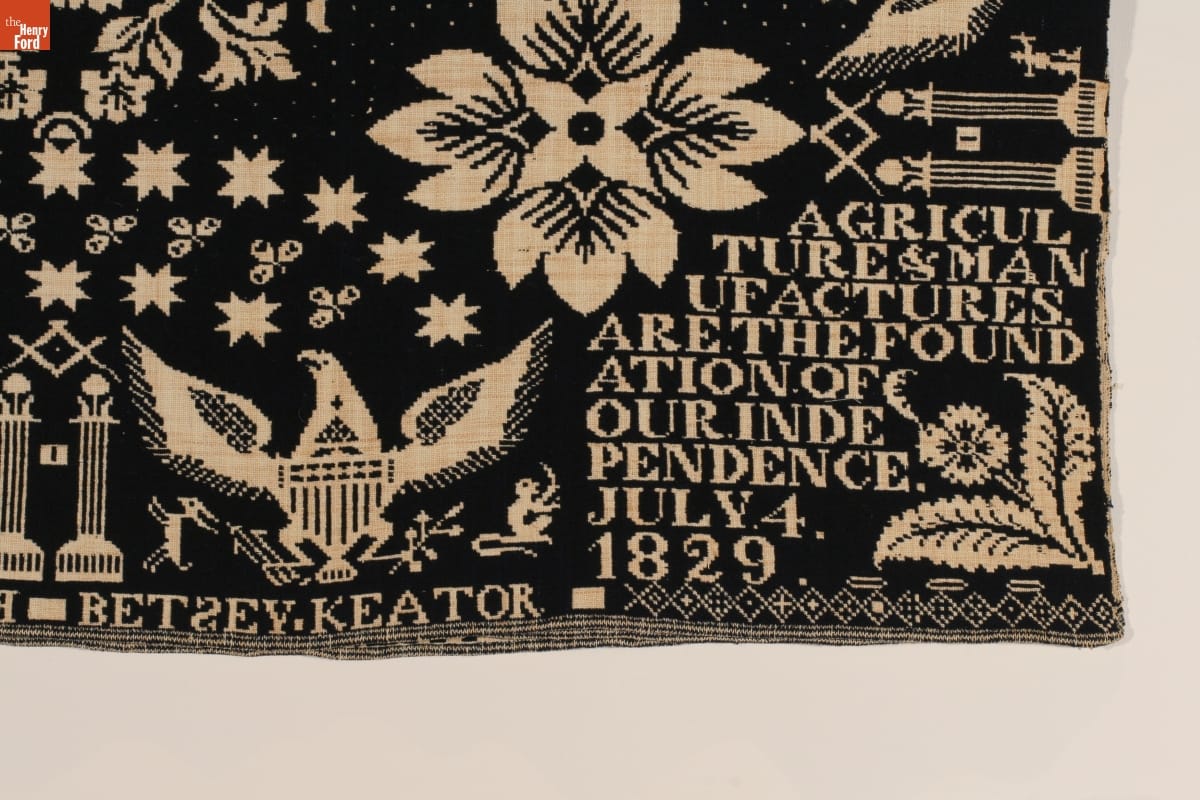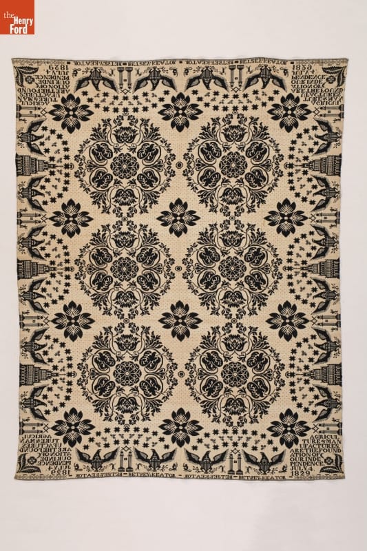 "Agriculture & Manufactures" Coverlet Woven for Betsey Keator, 1829