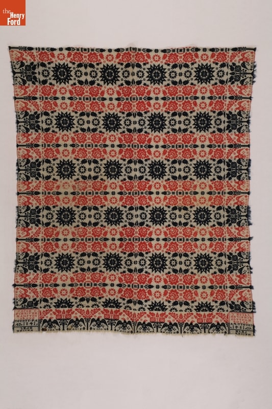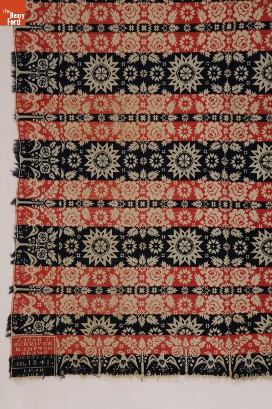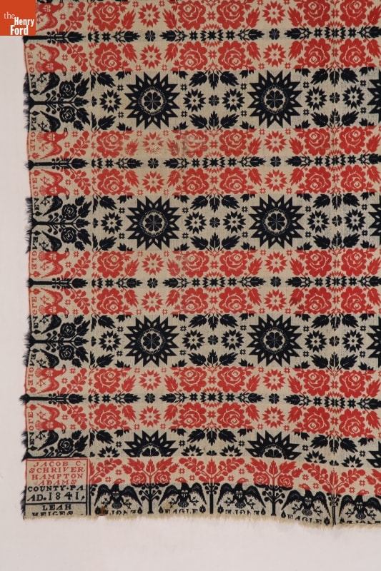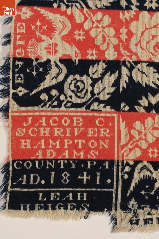Jacob C. Schriver Coverlet Woven in 1841 for Leah Heiges