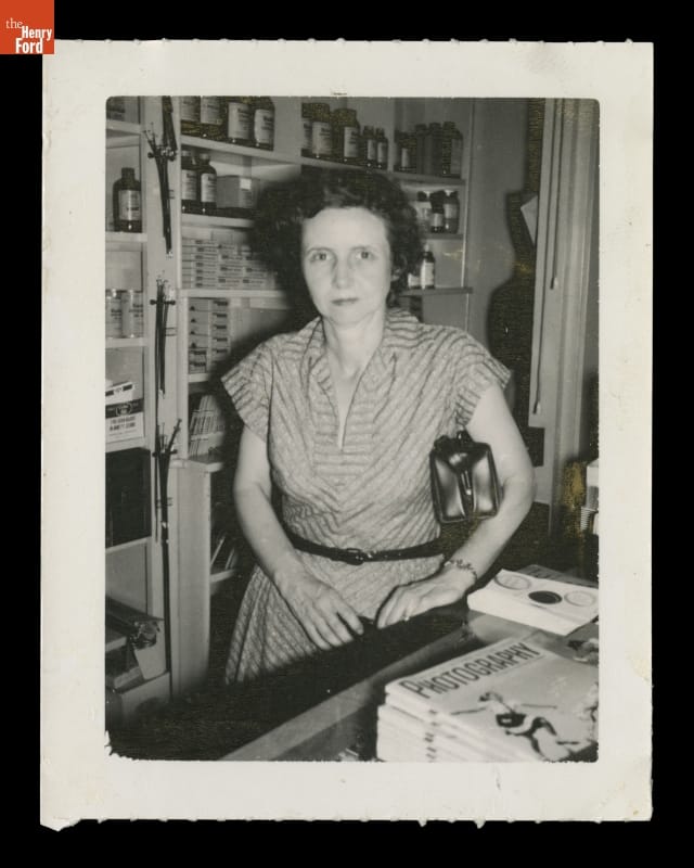 Instant Camera Snapshot of a Woman in a Camera Supply Store, 1954