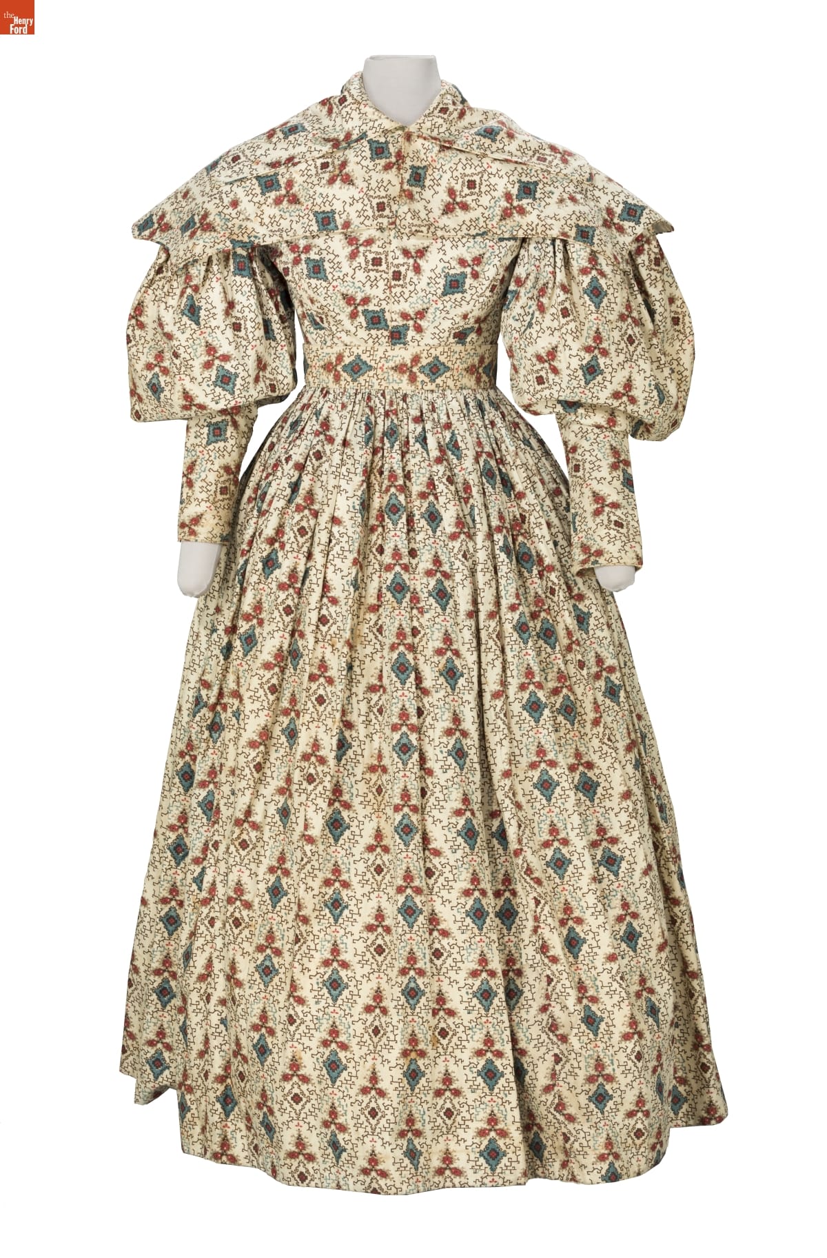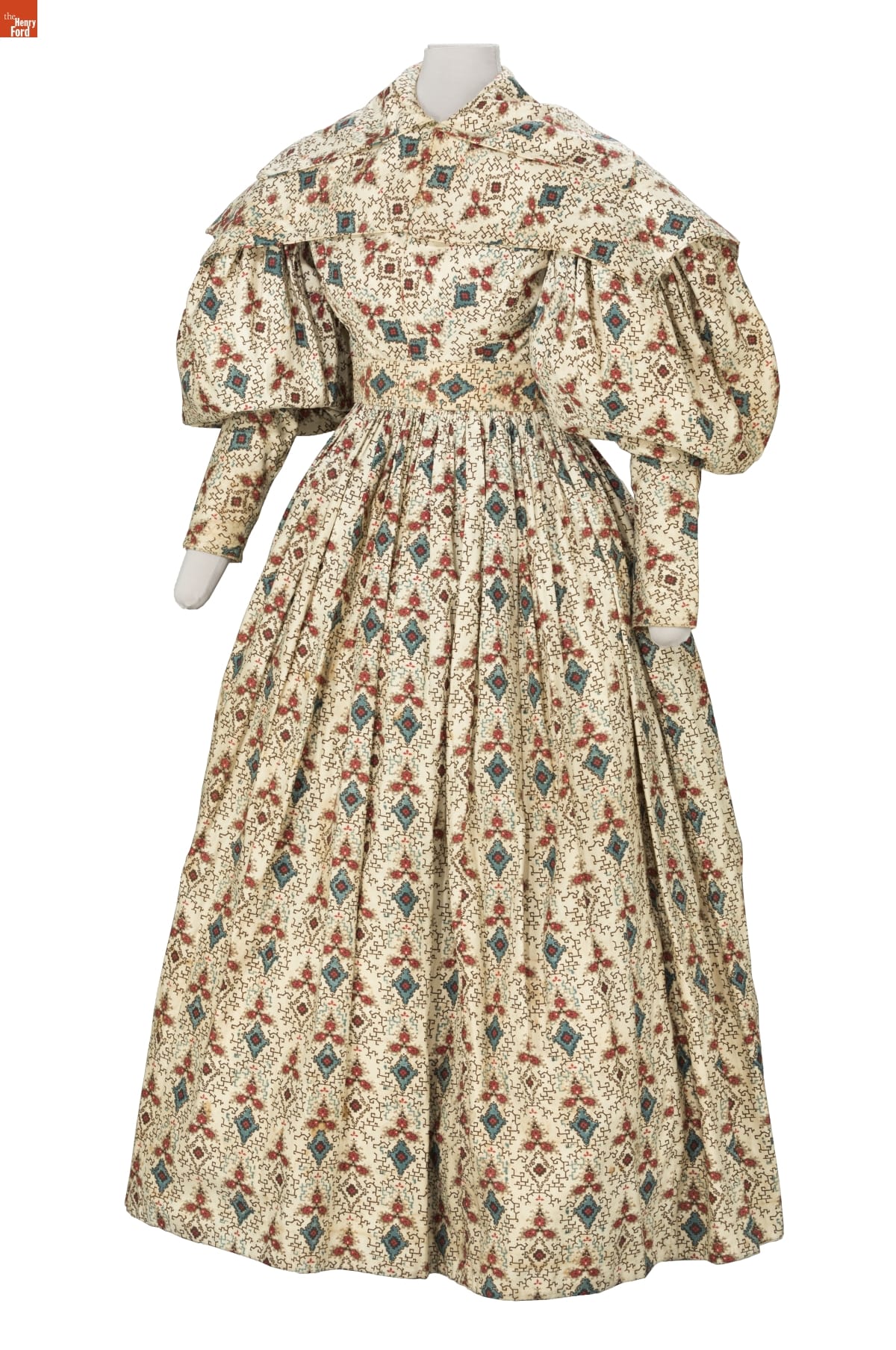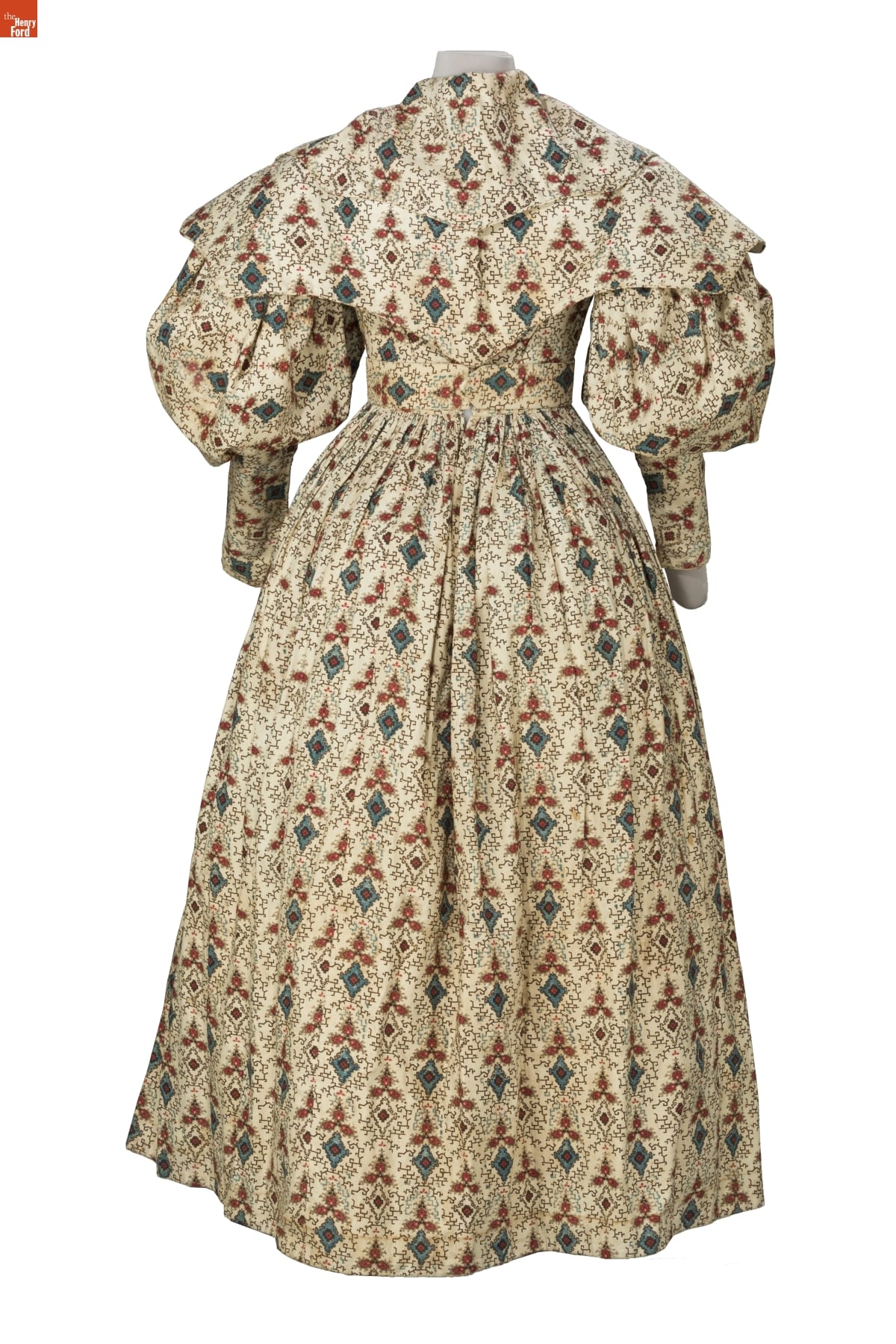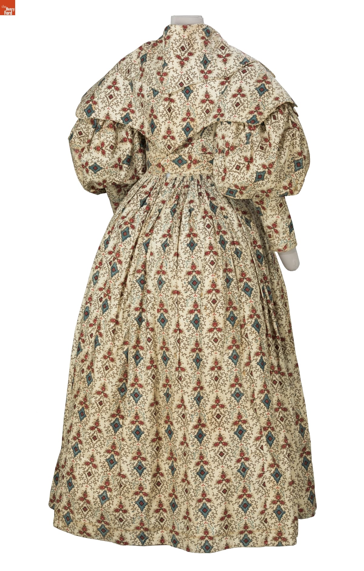 By the 1830s, factories in New England were able to produce a staggering 120 million yards of printed cotton textiles each year. People eagerly purchased these fabrics for dress goods, shirting, and home furnishings. This dress was later owned by children's author and illustrator Tasha Tudor, who lived a lifestyle reminiscent of the 1830s on her New Hampshire farm. Tudor used her collection of antique clothing as inspiration for her artwork.