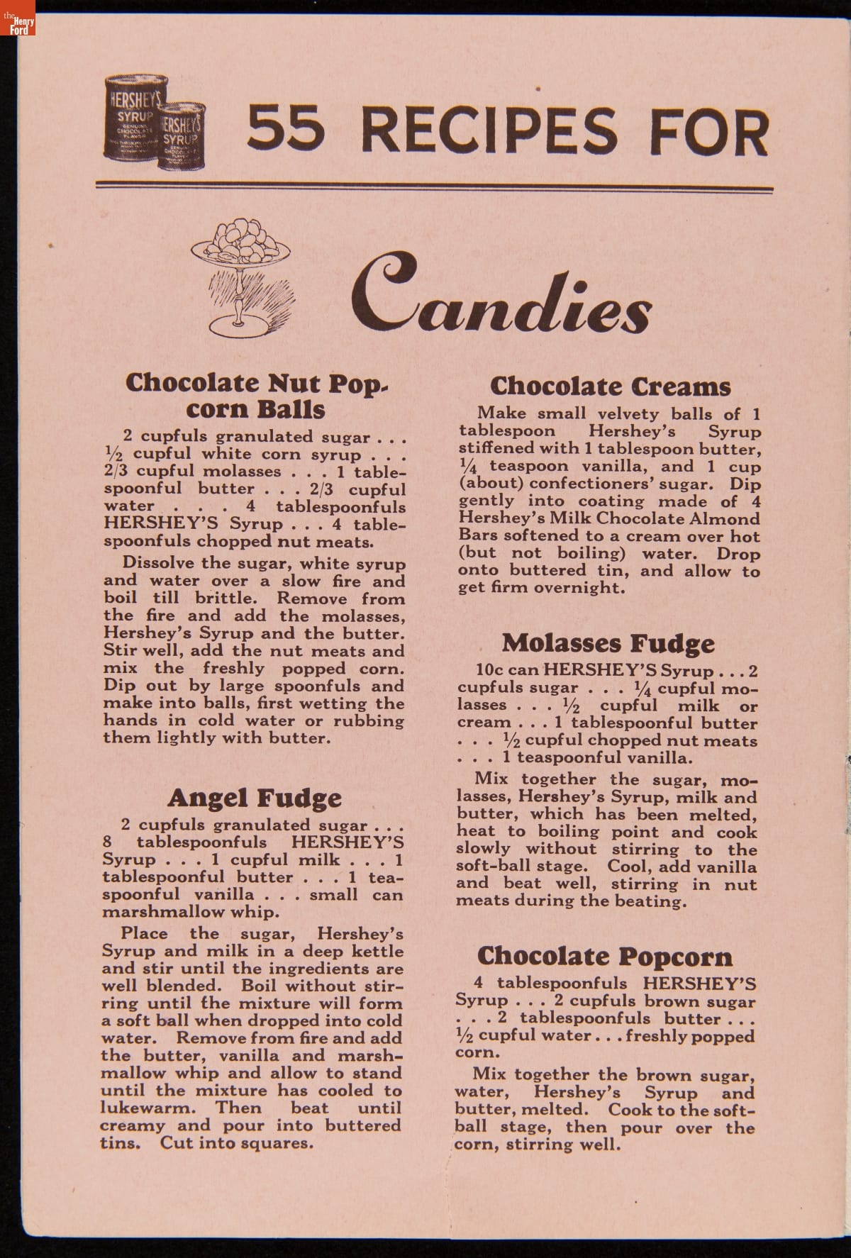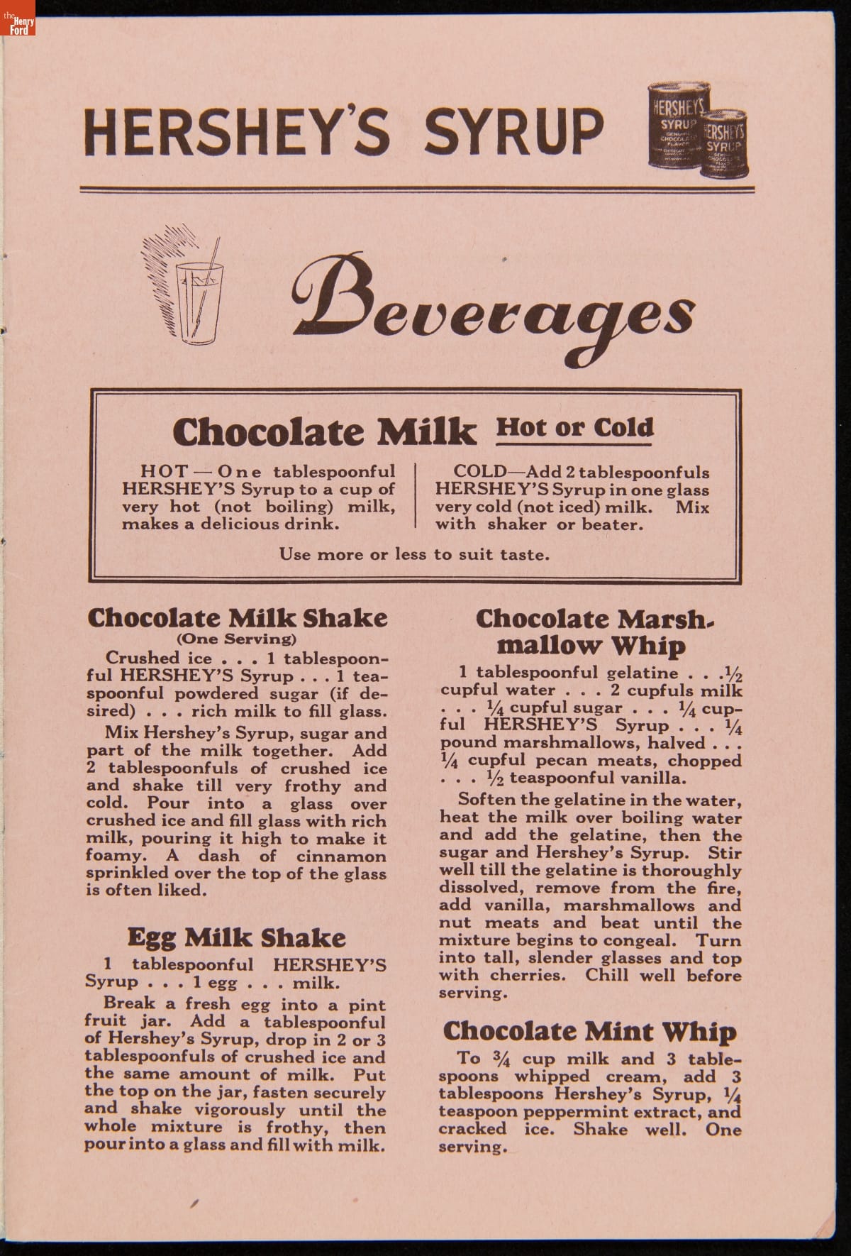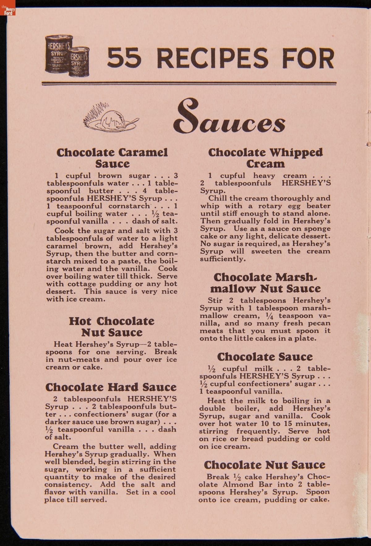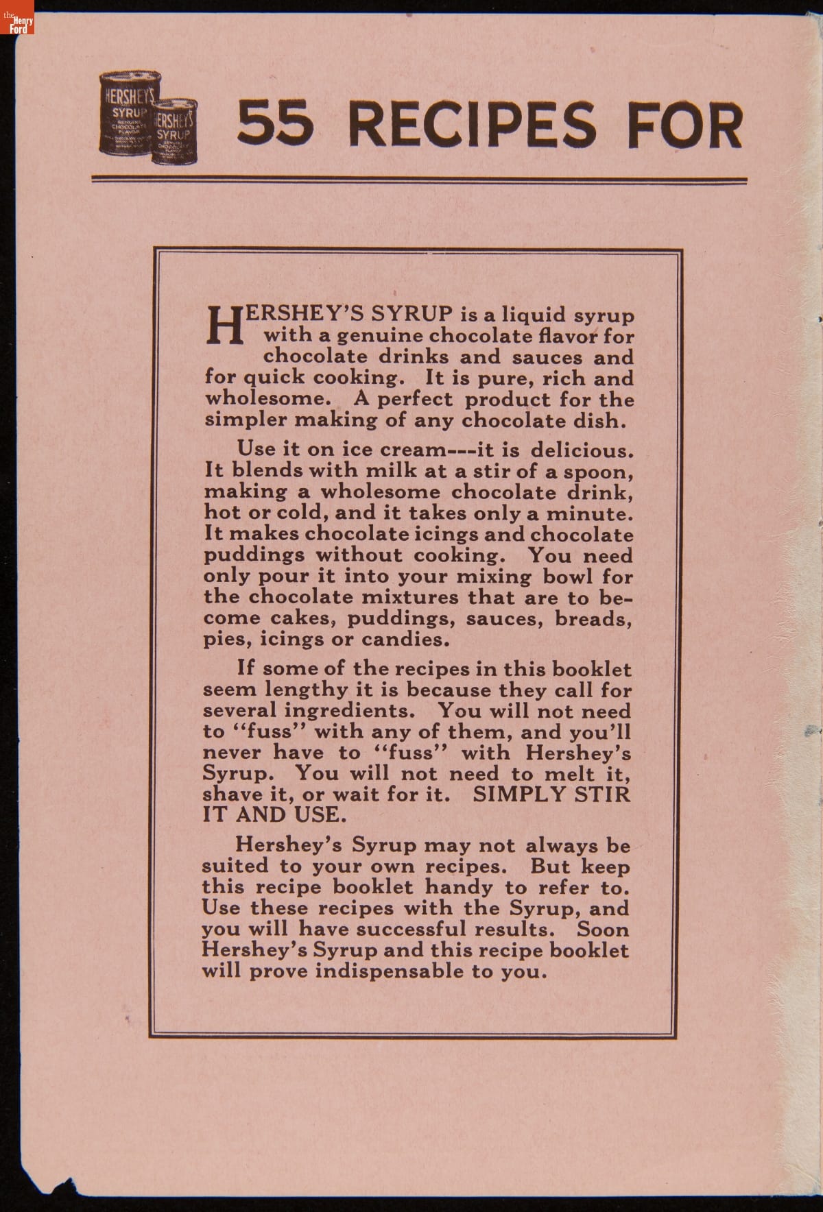 Recipe Booklet, "55 Recipes for Hershey's Syrup Genuine Chocolate Flavor," 1926-1930