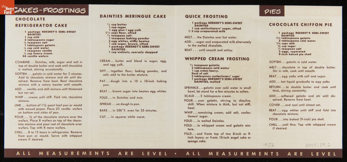 Recipe Leaflet, "9 Famous Recipes for Hershey's Semi-Sweet Chocolate Dainties," 1956