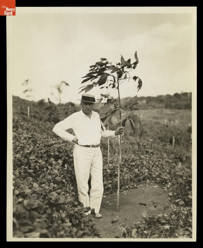 Henry Ford established Fordlandia and Belterra in the Brazilian rainforest to supply rubber for automobile production. He began shipping machinery and supplies to the Amazon in 1928. Ford paid the indigenous workers good wages and supplied various amenities -- he also imposed foreign work traditions and behavioral restrictions which the workers resented. The plantations failed and Ford Motor Company disposed of the project in 1945.