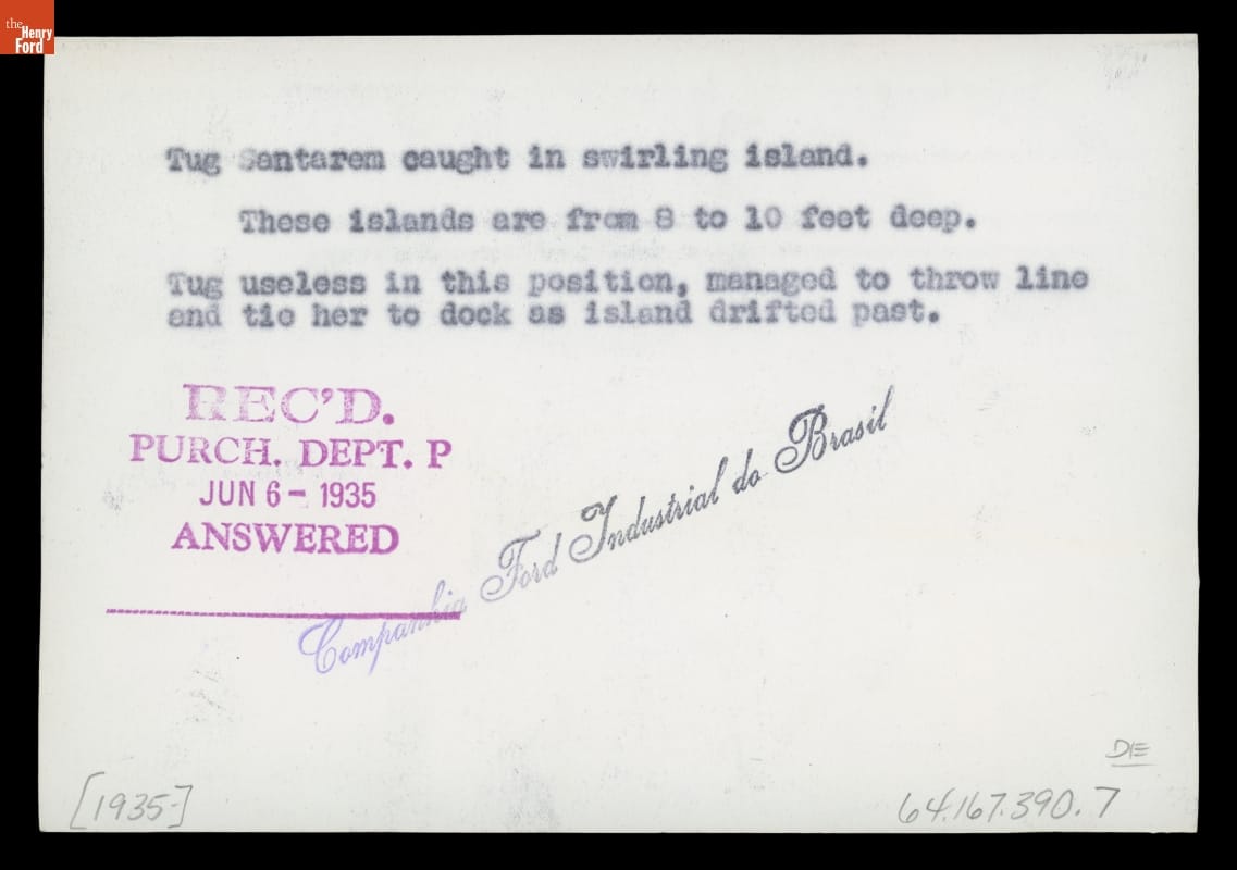 Stranded Tug "Santarem" Caught in Floating River-Grass Island, Fordlandia, 1935