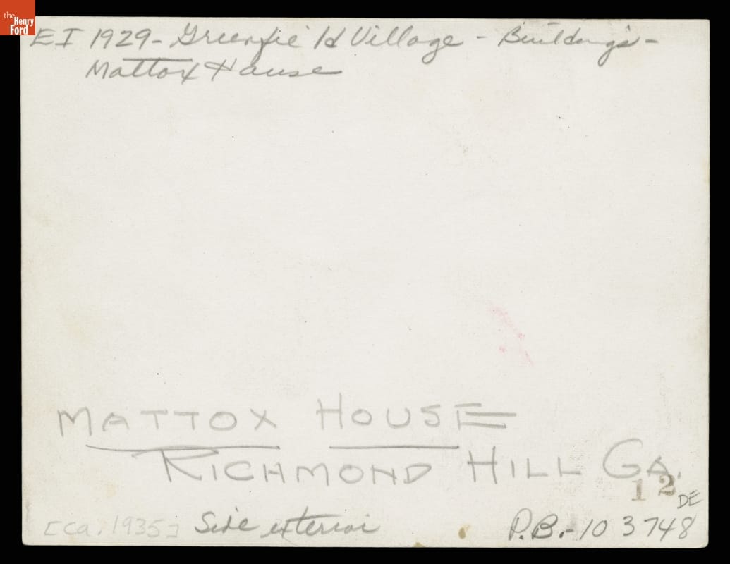 Henry Ford brought this house to Greenfield Village in 1943, one of a group of buildings to represent African Americans' progress from bondage through emancipation to world recognition. Later research revealed that this home belonged to the Mattoxes, a land-owning African-American family--not a white plantation overseer, as Ford had believed. Current interpretation presents Mattox family life from the 1930s.