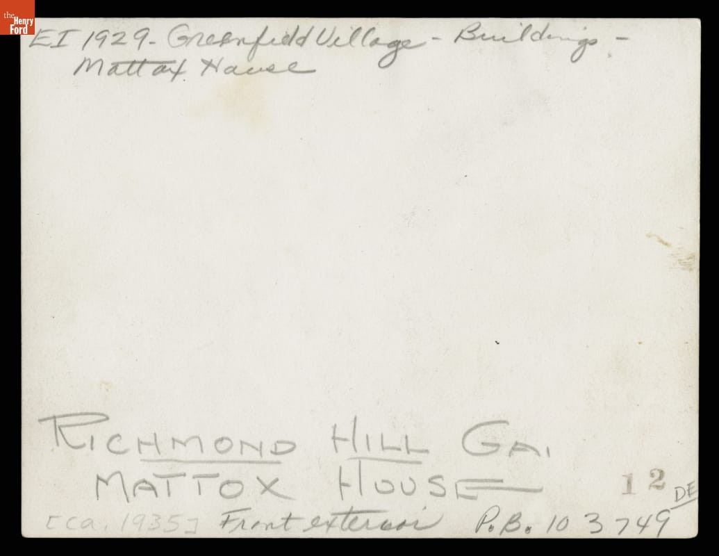 Henry Ford brought this house to Greenfield Village in 1943, one of a group of buildings to represent African Americans' progress from bondage through emancipation to world recognition. Later research revealed that this home belonged to the Mattoxes, a land-owning African-American family--not a white plantation overseer, as Ford had believed. Current interpretation presents Mattox family life from the 1930s.