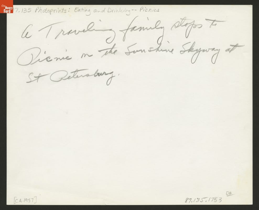 Family Picnicking during a Car Trip, St. Petersburg, Florida, circa 1957