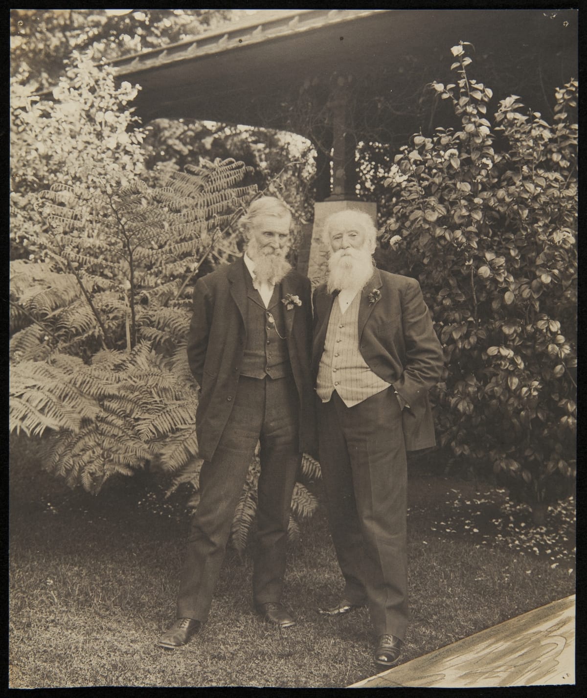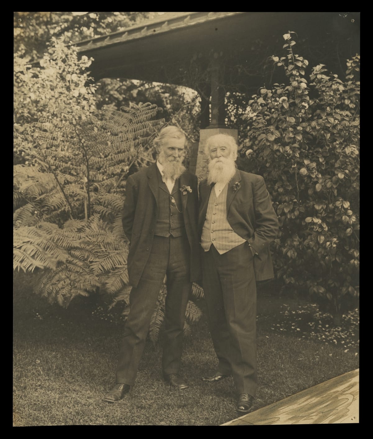 Naturalist-writer John Burroughs first met wilderness conservationist John Muir in the early 1890s at the home of the editor for Century Magazine. They became friends, then traveled together to places that included Alaska, the Grand Canyon and Yosemite. Here they are together in Pasadena Glen, California, where Muir had friends and Burroughs owned a little winter bungalow.