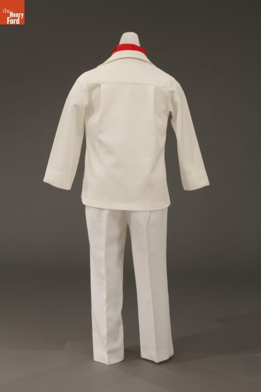 This chef uniform was worn by George A. Molchan as part of his costume for the character of "Little Oscar," spokesman for Oscar Mayer, from 1951-1987. Molchan worked mostly in the Midwest, making public appearances at supermarkets, on television shows and at various public events. When Molchan retired, Oscar Mayer retired the "Little Oscar" character as well.