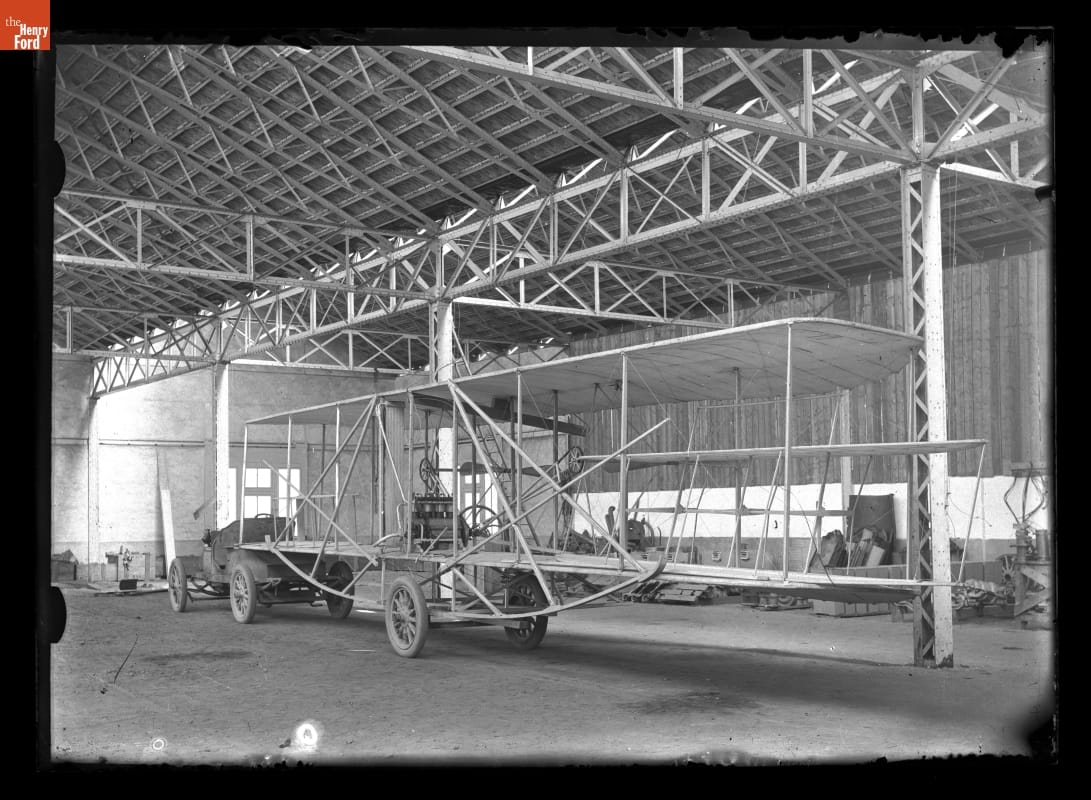 Wright Flyer on Carrier inside the Bollee Factory, Le Mans, France, August 1908