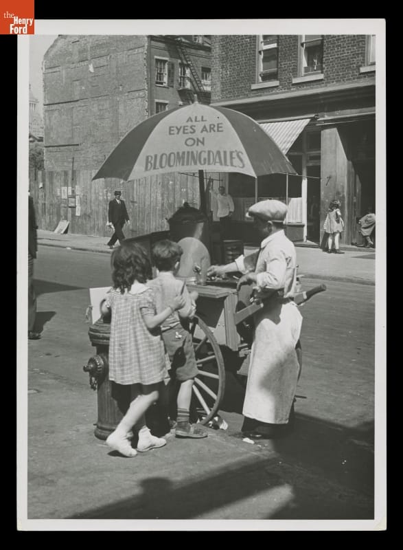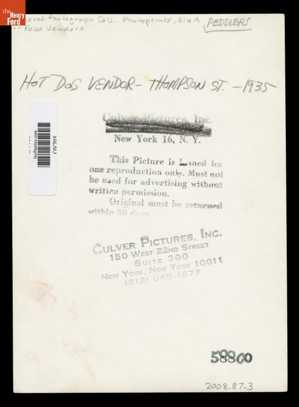 handwritten in pencil on back: Hot Dog Vendor - Thompson St. - 1935