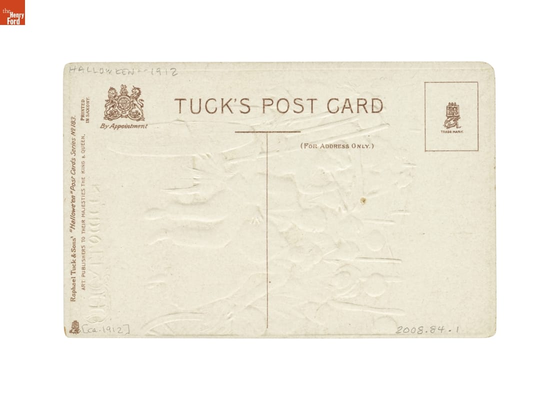 Printed on back: TUCK'S POST CARD / Raphael Tuck & Sons "Hallowe'en Post Cards Series No. 183 / ART PUBLSHERS TO THEIR MAJESTIES THE KING AND QUEEN / PRINTED IN SAXONY