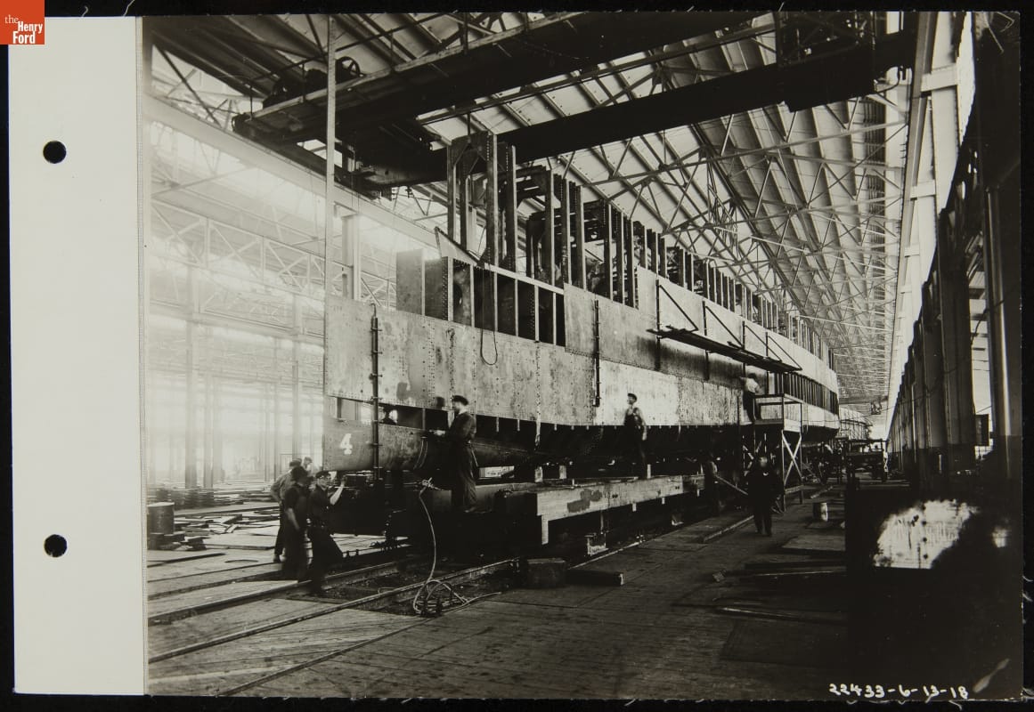 Assembling the First Eagle Boat in the Ford Ship Plant (Rouge Plant "B" Building), June 1918
