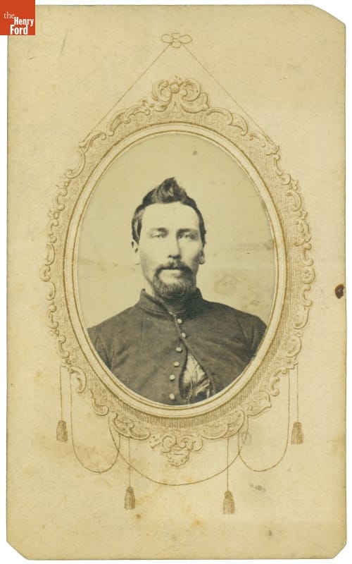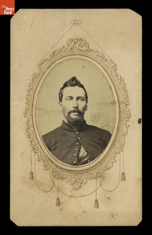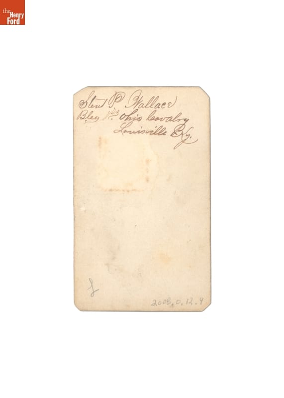 This carte-de-visite shows Stout P. Wallace, a Union Army soldier from Ohio. Carte-de-visite was a small photographic print on cardboard stock made by professional photographers. Popular in the United States during the Civil War, soldiers often sent these inexpensive images back home as a reminder to friends and family of their loved ones in service.