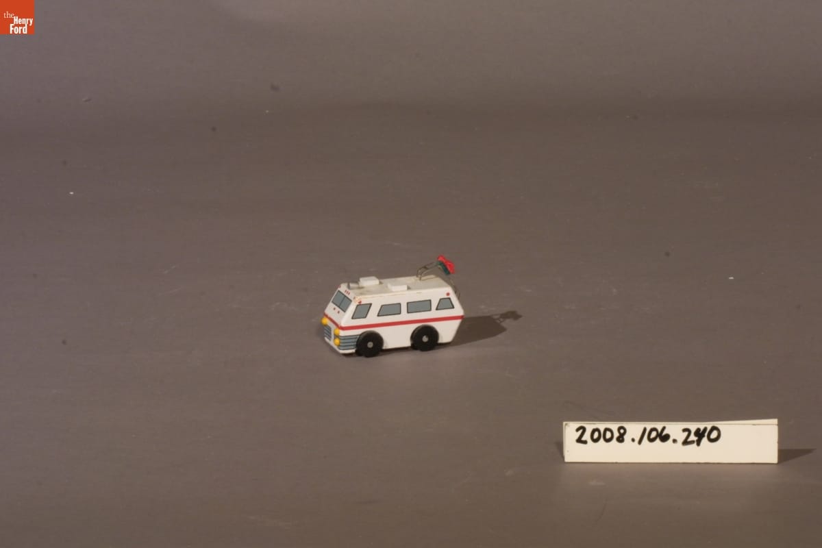 A new generation of self-propelled recreational vehicles emerged out of the booming vacation market of the 1950s and 1960s. Fully integrated motorhomes allowed vacationers to pursue outdoor lifestyles with all the comforts of home. This collectible was reminiscent of a resurgence of interest in motorhomes during the 1980s, when they became more energy-efficient than earlier gas-guzzling models.