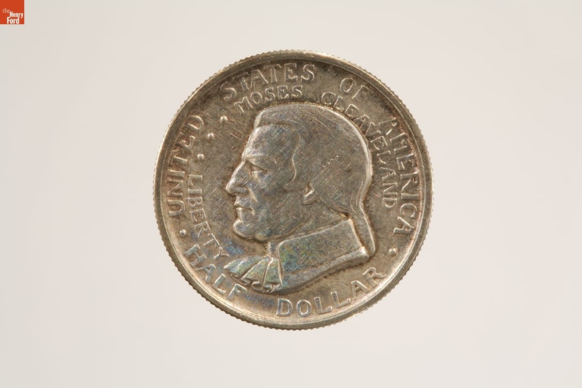 Cleveland celebrated the centennial of the city's incorporation with the Great Lakes Exposition during the summers of 1936 and 1937. This commemorative half-dollar coin, issued by the U. S. Mint, celebrated both events. Fairgoers could purchase this coin for a dollar and a half as a souvenir of their visit.