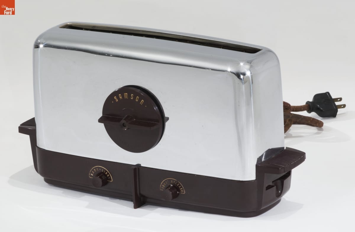 SAMSON / AUTOMATIC TOASTER / MODEL 5147N / MADE IN U.S.A. BY / SAMSON UNITED CORP. / ROCHESTER - NEW YORK - U.S.A. / 1100 WATTS - 115 VOLTS / OPERATES ON AC ONLY / PATENTS APPLIED FOR