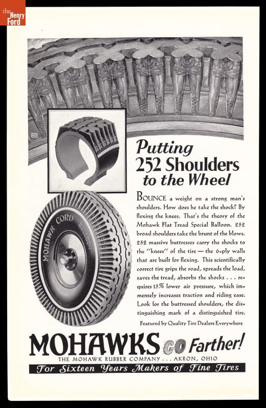 Printed at bottom: MOHAWKS GO Farther / THE MOHAWK RUBBER COMPANY...AKRON, OHIO / For Sixteen Years Makers of Fine Tires