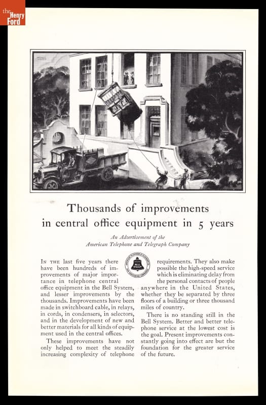 AT&T Bell System Advertisement, "Thousands of Improvements in Central Office Equipment in 5 Years," July 1929